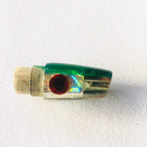 The elements have come together for a perfect Ahi Killer! Nice weight, jetted, mean green back over time-tested decades-old paperclip-pattern foil insert.